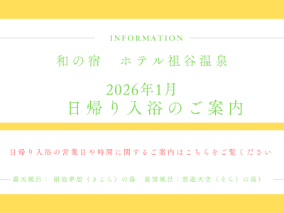 【日帰り入浴カレンダー】1月 日帰り入浴カレンダーとお知らせ