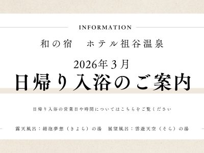 【日帰り入浴カレンダー】3月 日帰り入浴カレンダーとお知らせ