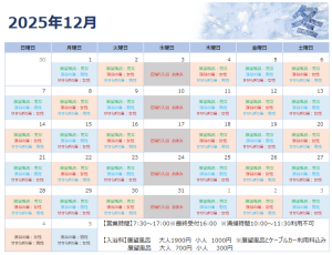 12月 日帰り入浴カレンダー